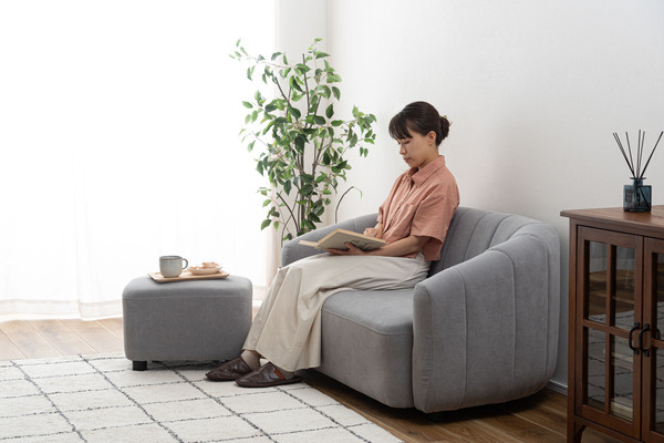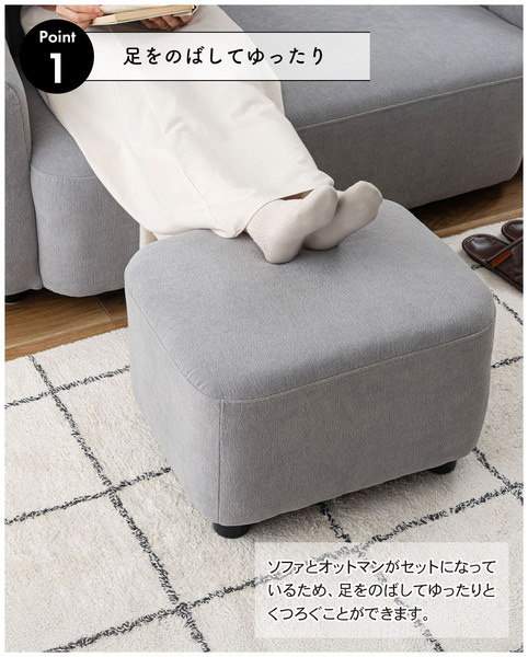 ●ソファとオットマンがセットになっているため、足を伸ばしてゆったりとくつろぐことができます。