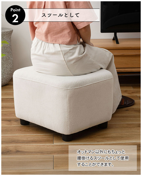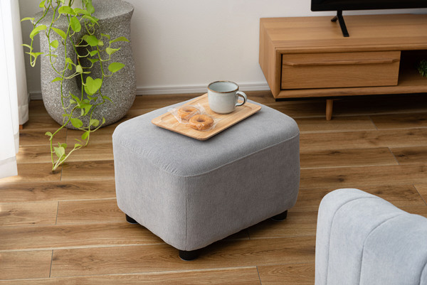 ●ソファと同じ素材のオットマンはスツールとしても活用でき、シーンに応じて使い分けができます。