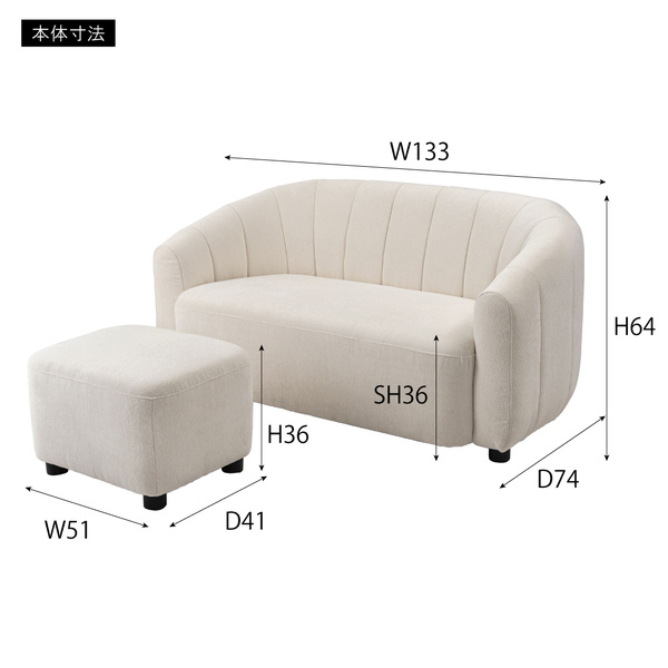 本体サイズ(幅×奥行×高さ) cm W133/51×D74/41×H64/36×SH36cm