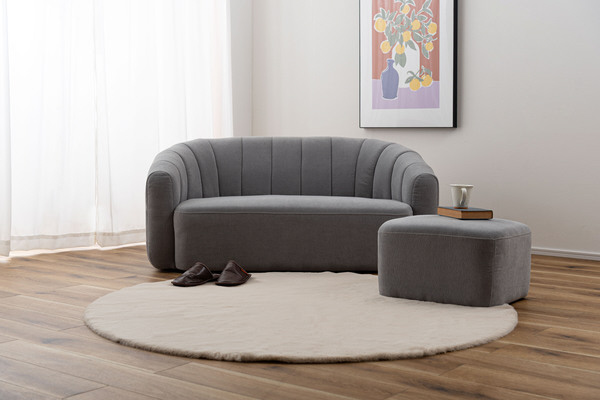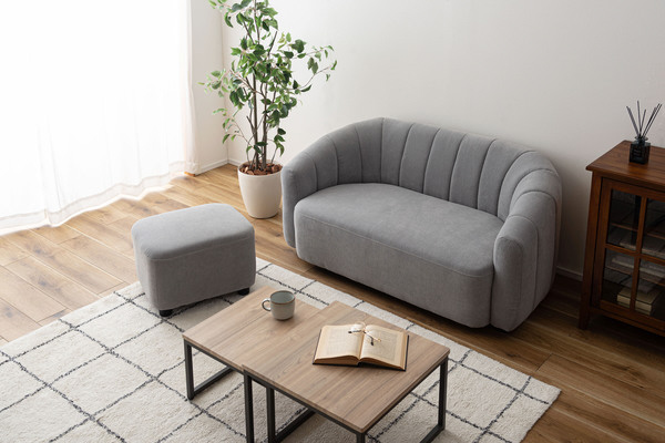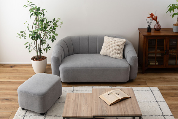 くつろぎ感を兼ね備えたコンパクトサイズ。丸みを帯びたフォルムが上品なソファ&オットマン。