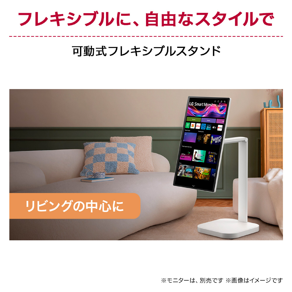 部屋中どもでも、自由なスタイルで。仕事も、遊びも、クリエイティブに。 LG Smart Monitor Swing Stand STA32F