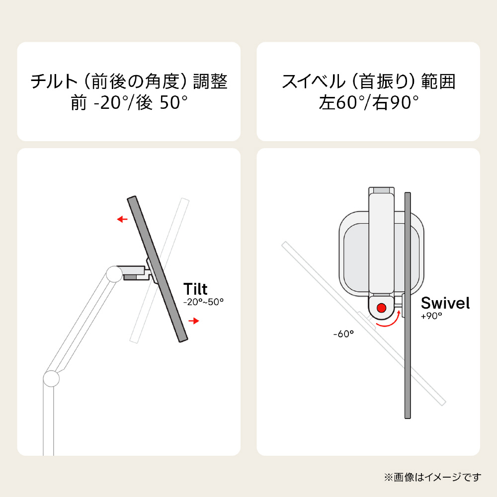 ※製品の仕様上、高さ調整をする場合、モニターの前後の位置も連動して移動します。高さのみ、前後のみの位置調整は、出来ません