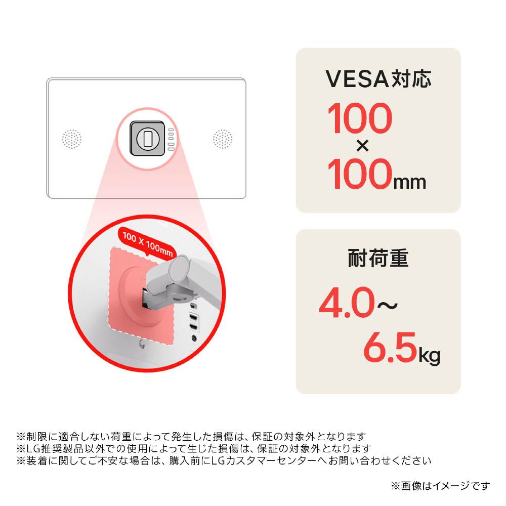 標準的なモニターのマウント規格(100×100mm)に対応し、4kg?6.5kgの荷重に耐えます。