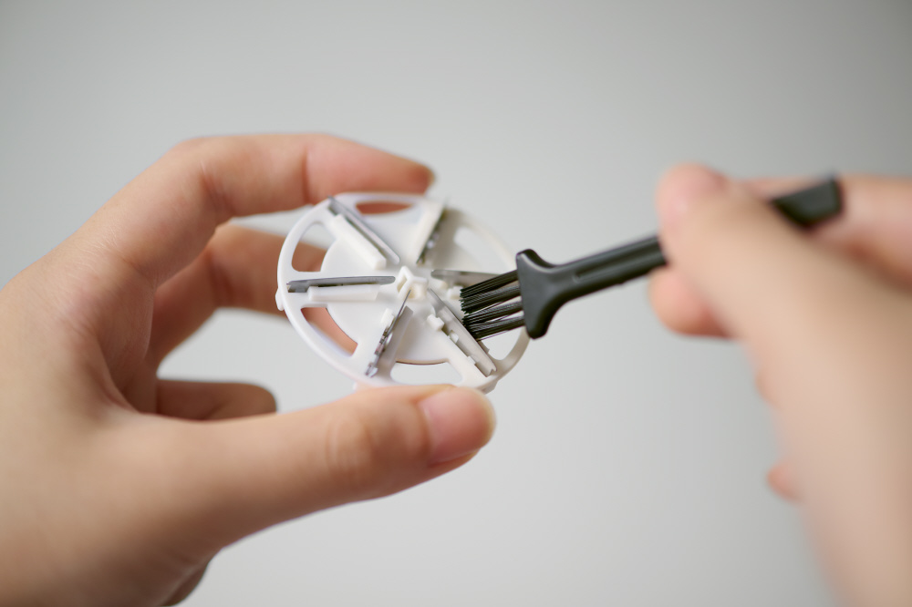 軽く撫でるように動かすだけで、6枚の内刃が毛玉をきれいに取り除く。