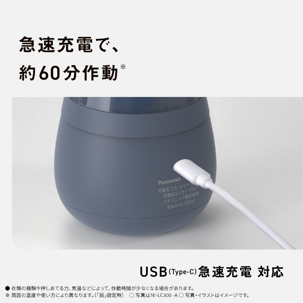 仕様1 充電式 急速1時間充電。USB充電【Type-C】