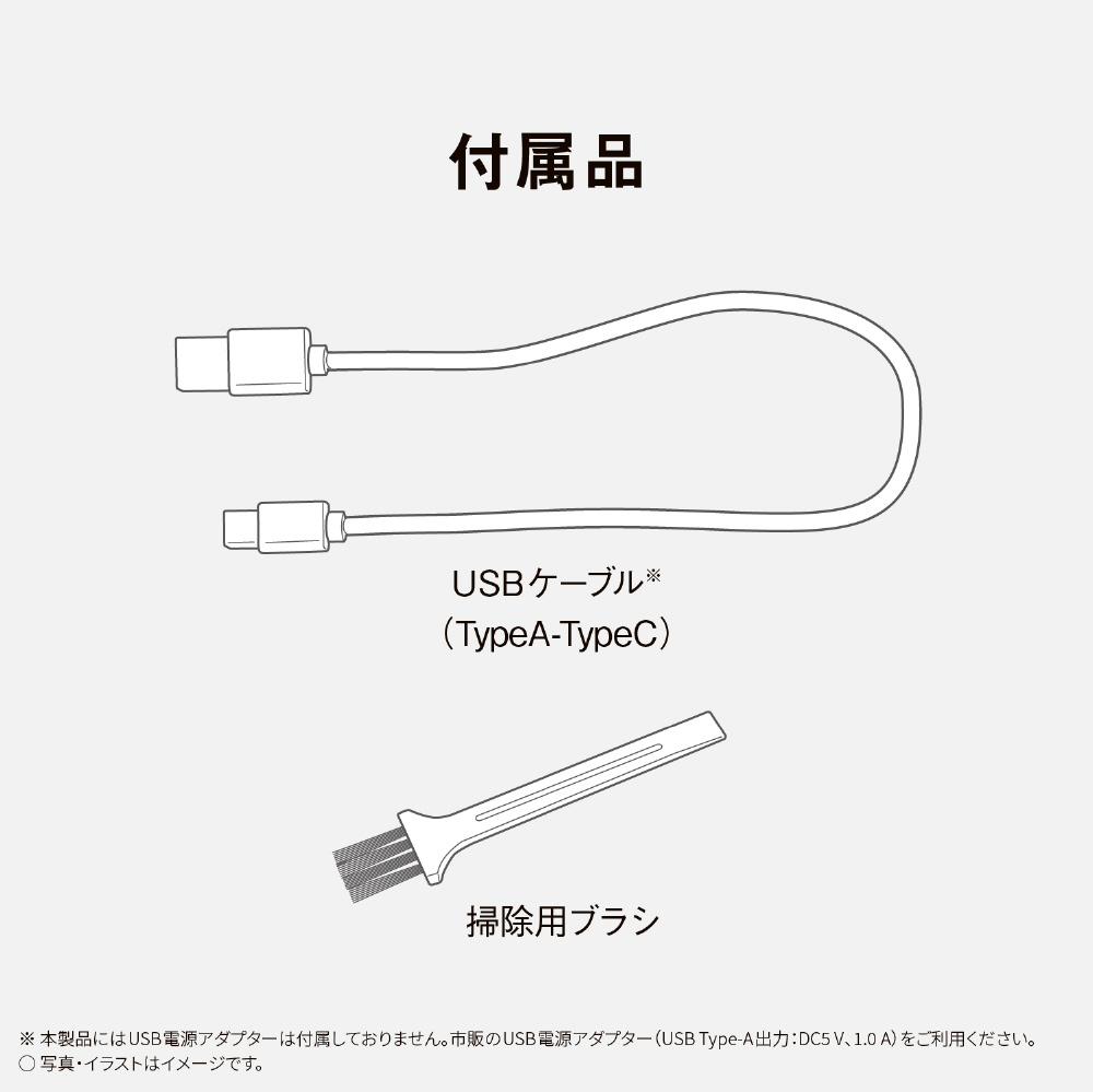 Type-Cの急速充電に対応。フル充電で約60分作動可能。(「弱」作動時)