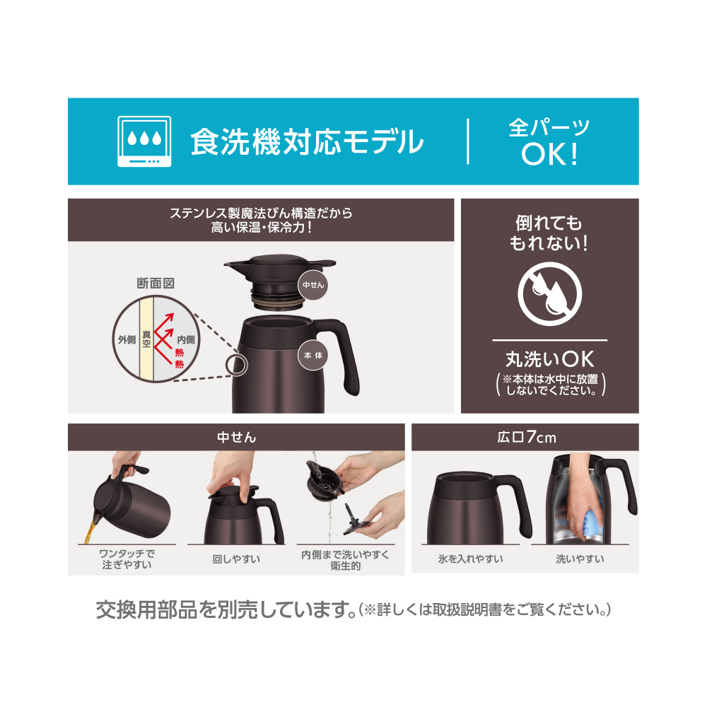 ステンレスポット 食洗器対応モデル ブラウン TTG-1000-BW [1.0L]