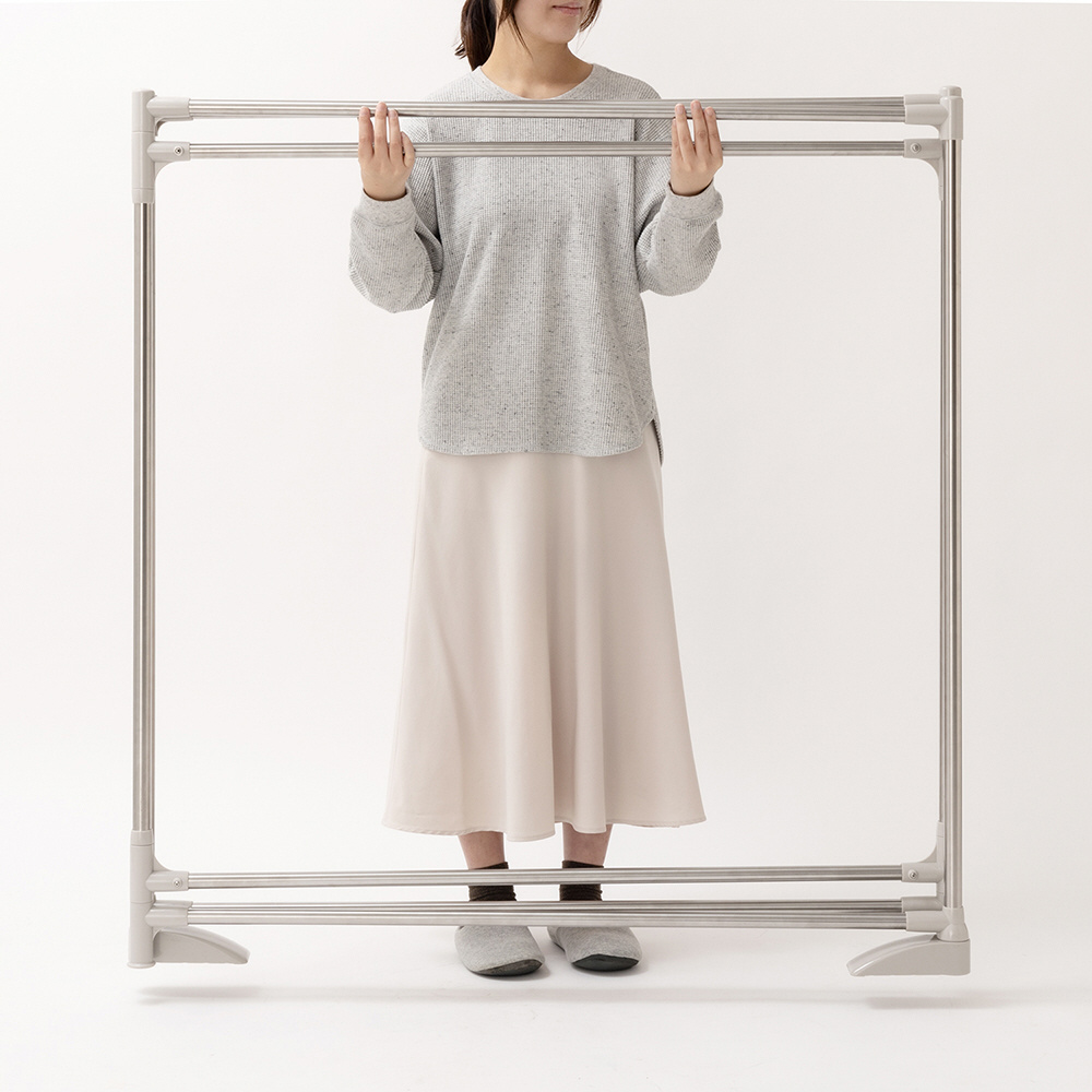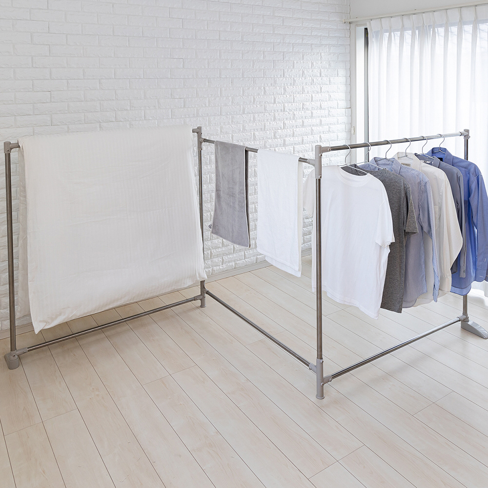 専用伸縮竿付きの便利な折りたたみ式の布団干し。日当たり・風通し・設置スペースに合わせて形を自在に変えられます。