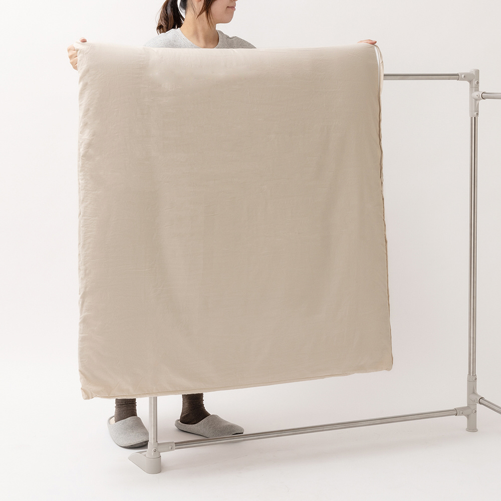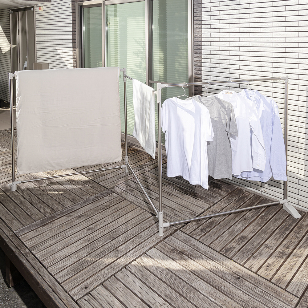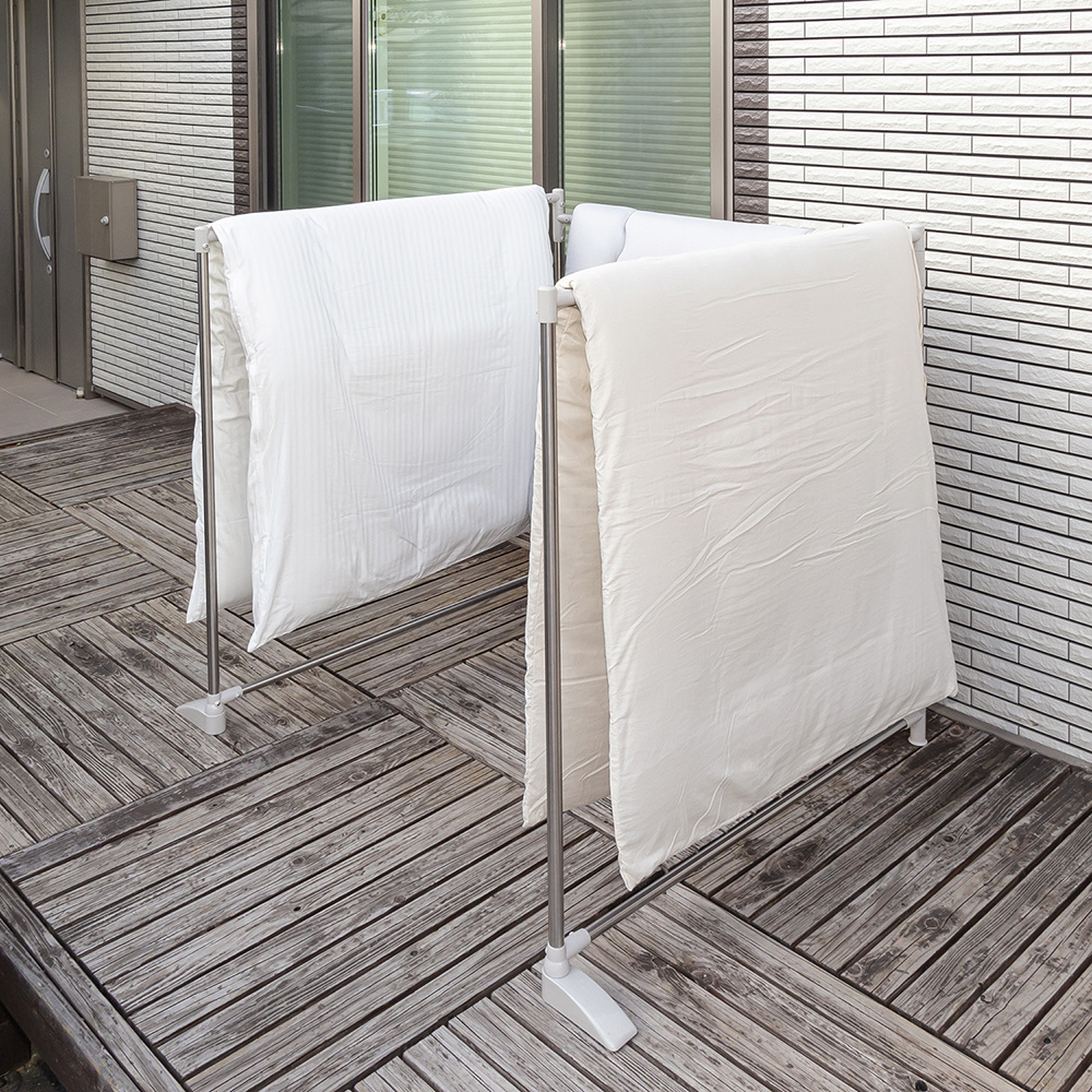便利な折りたたみ式の布団干し。日当たり・風通し・設置スペースに合わせて形を自在に変えられます。