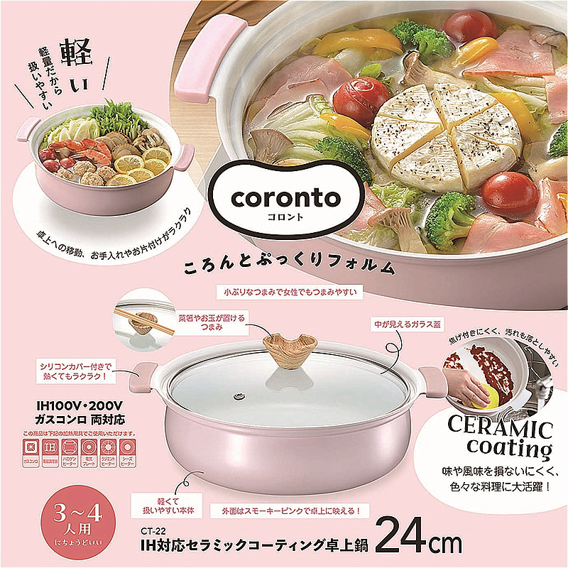 coronto−コロント−IH対応セラミックコーティング卓上鍋24cm CT-22
