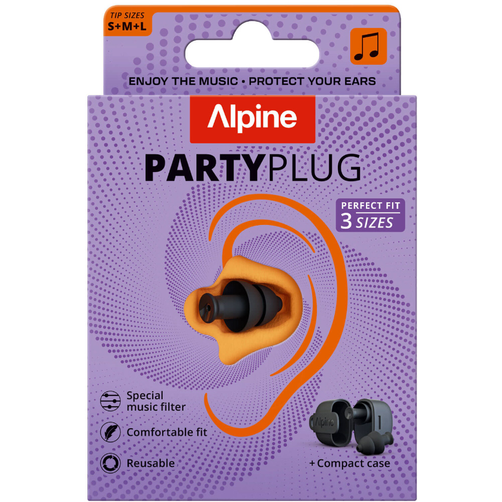 Alpine PartyPlugは、音楽愛好者やフェス・コンサート鑑賞者のために設計されたイヤープラグです。音楽や会話をクリアに楽しみながら有害な騒音を19dB低減する音楽鑑賞に最適化されたフィルターを搭載。S/M/Lの3サイズイヤーチップで快適かつしっかりフィットし、丈夫でコンパクトなキャリングケース付きでどこへでも持ち運べます。
