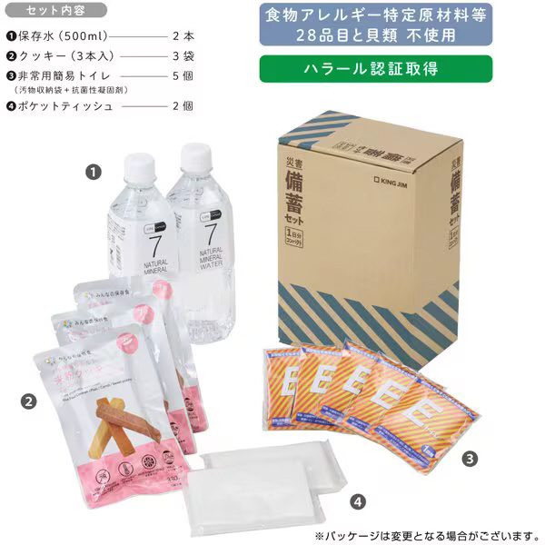 同梱されている食品は食物アレルギー特定原材料等28品目と貝類不使用、ハラール認証を取得しているので、幅広い方々が安心して食べることが出来ます。さらに水もお湯も不要で、調理がいらない手軽さもポイントです。