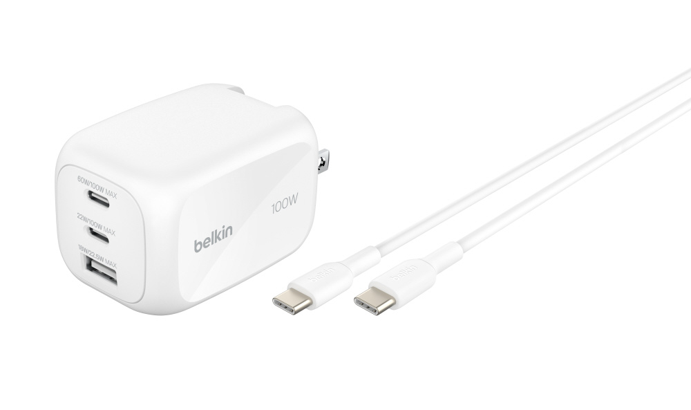 BoostChargePro3ポートGaN充電器100Wプラグ交換式USB-CtoC2mケーブル付き WCH016qc2MWH-B6