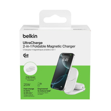 UltraCharge Qi2 25W 2-in-1 折りたたみ式マグネット充電器 ラウンド型 ホワイト WIZ039dqWH
