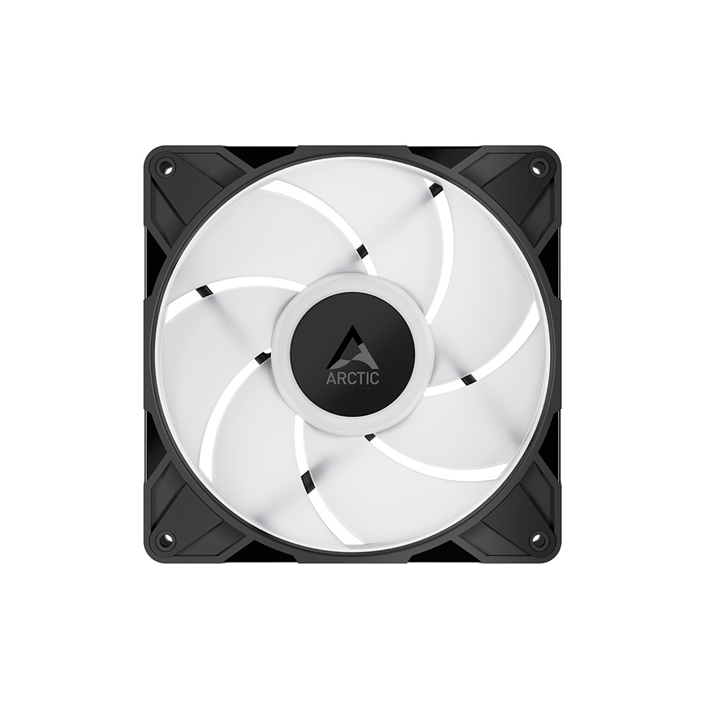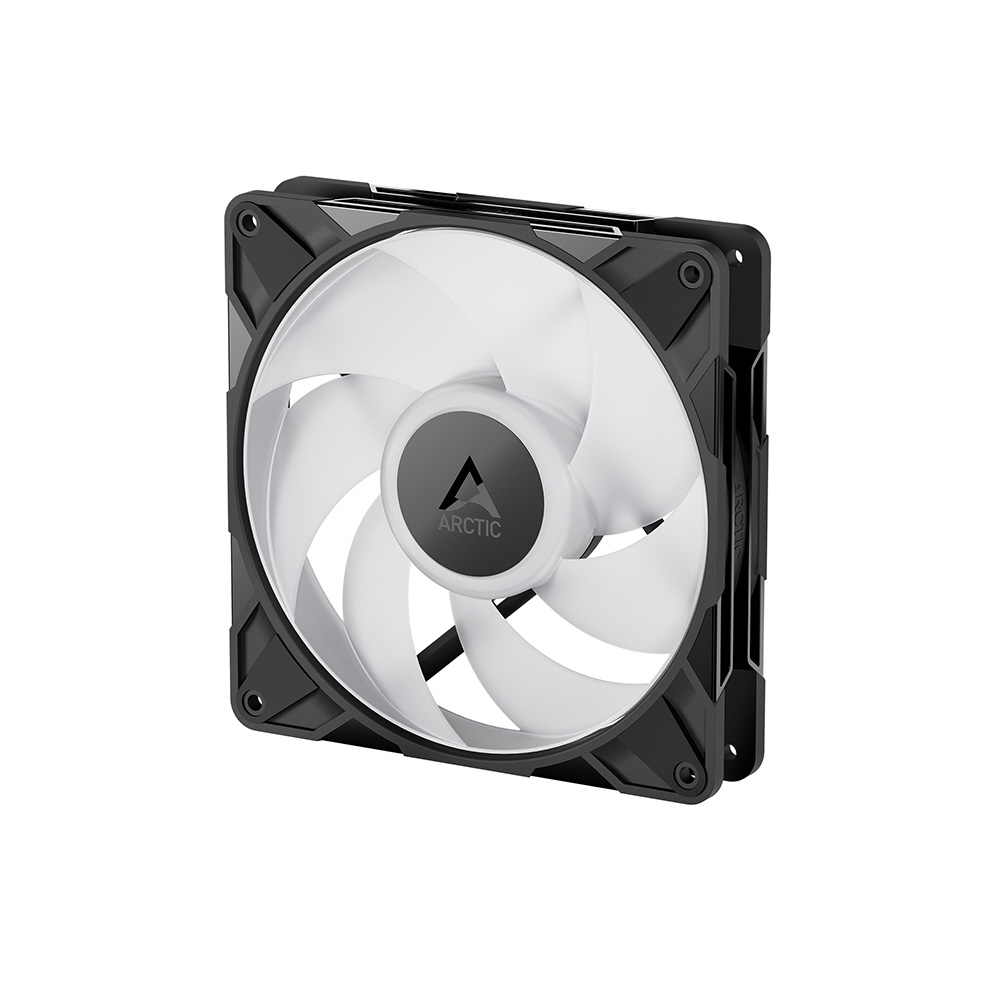 ワイドレンジ仕様のPWMファンP14 Pro PST ホワイト ARGB。400〜2500rpmの回転数により低エアフローから高エアフローまで幅広く対応。