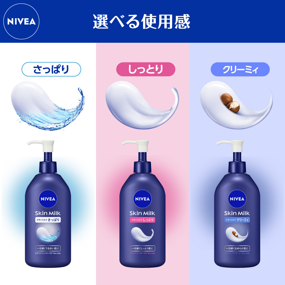 ミルクがクッションのように乾燥から肌を守り、うるおいが角層のすみずみまで行き渡ってなめらか肌一日続く●とろけるようなミルク、クリーミィタイプ≪乾燥肌≫●セラミドシアバターG*1配合(保湿):肌内部(角層)のセラミドの働きを補ってうるおいを保ち、すべすべの肌に保ちます。●うるおい持続成分配合:浸透型*2ヒアルロン酸・アルギニン・グリセリン *1セラミドNG・シアバター・グリセリン *2角層まで