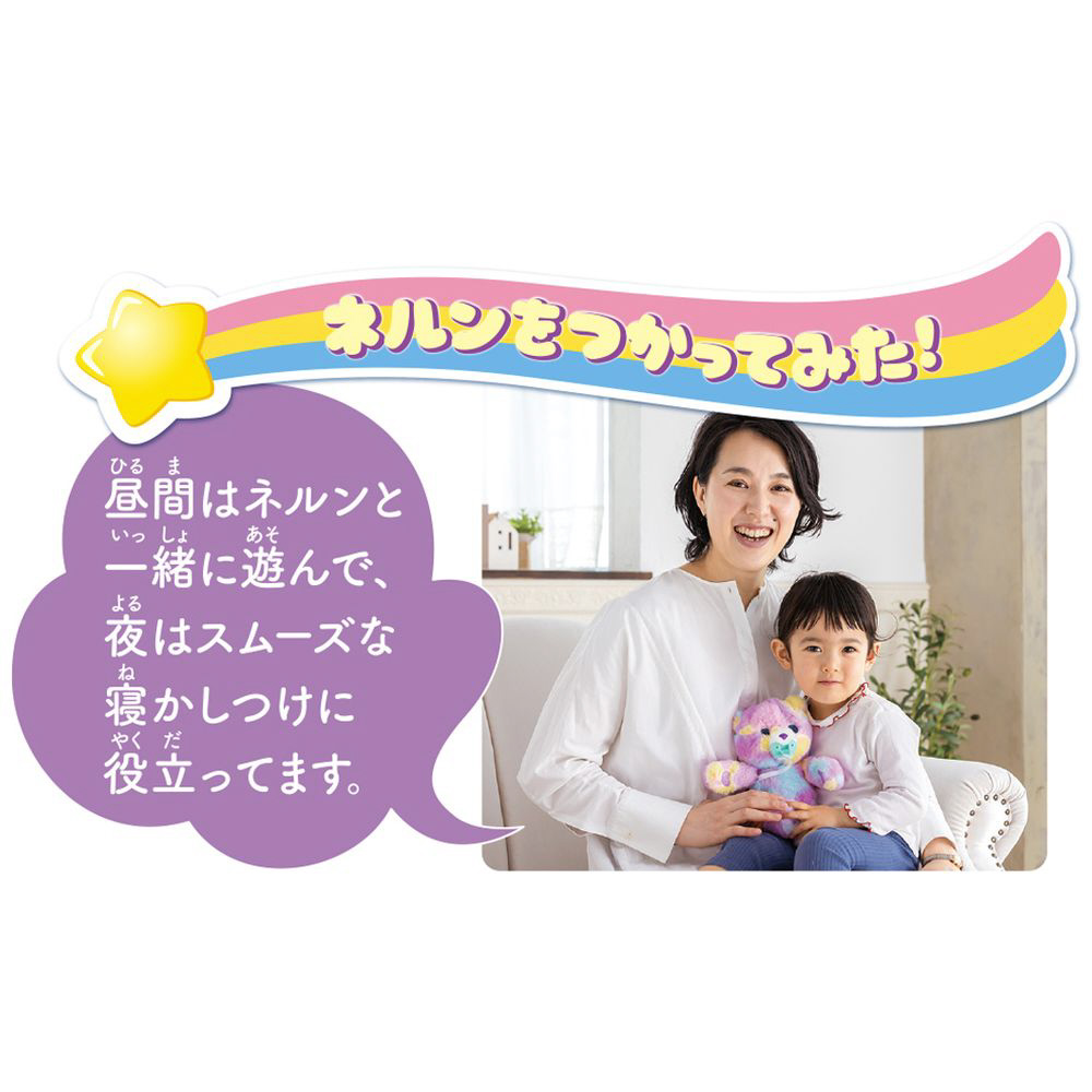 お世話するとねむってしまう、かわいいアクションぬいぐるみ「だっこして ネルン」にすやすやメロディが追加になりました。