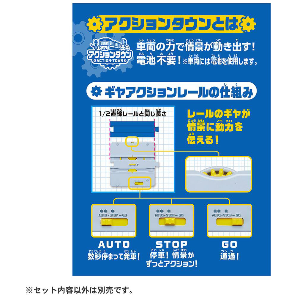 付属のギヤアクションレールは1/2直線レールサイズでレイアウトも組みやすい!