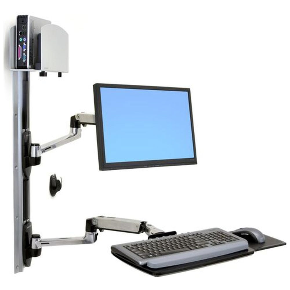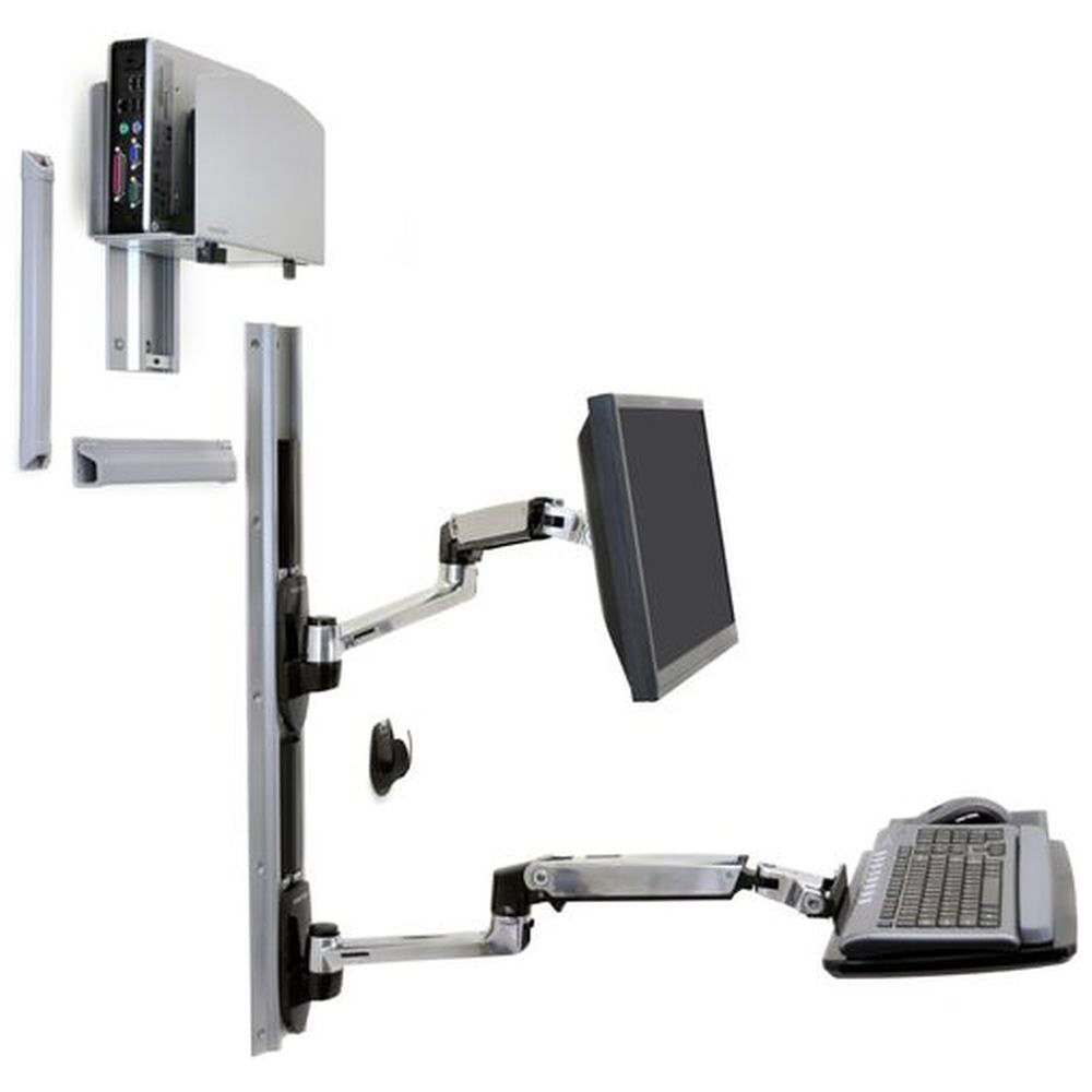 ERGOTRON LX ウォールマウントシステム 中型CPUホルダー付き アルミニウム 32インチ(2.3〜11.3kg)まで VESA規格対応