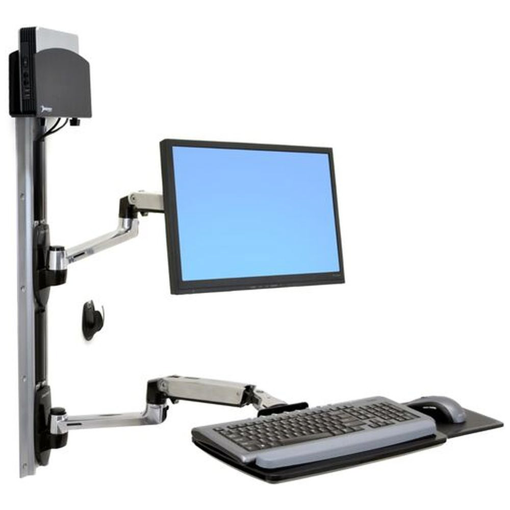ERGOTRON LX ウォールマウントシステム 小型CPUホルダー付き アルミニウム 32インチ(2.3〜11.3kg)まで VESA規格対応