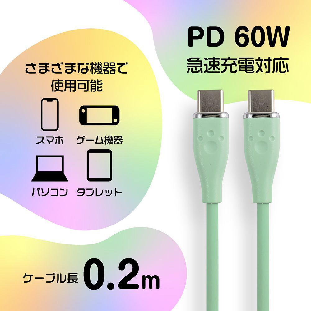 「60W対応シリコンケーブル Type C to C」
