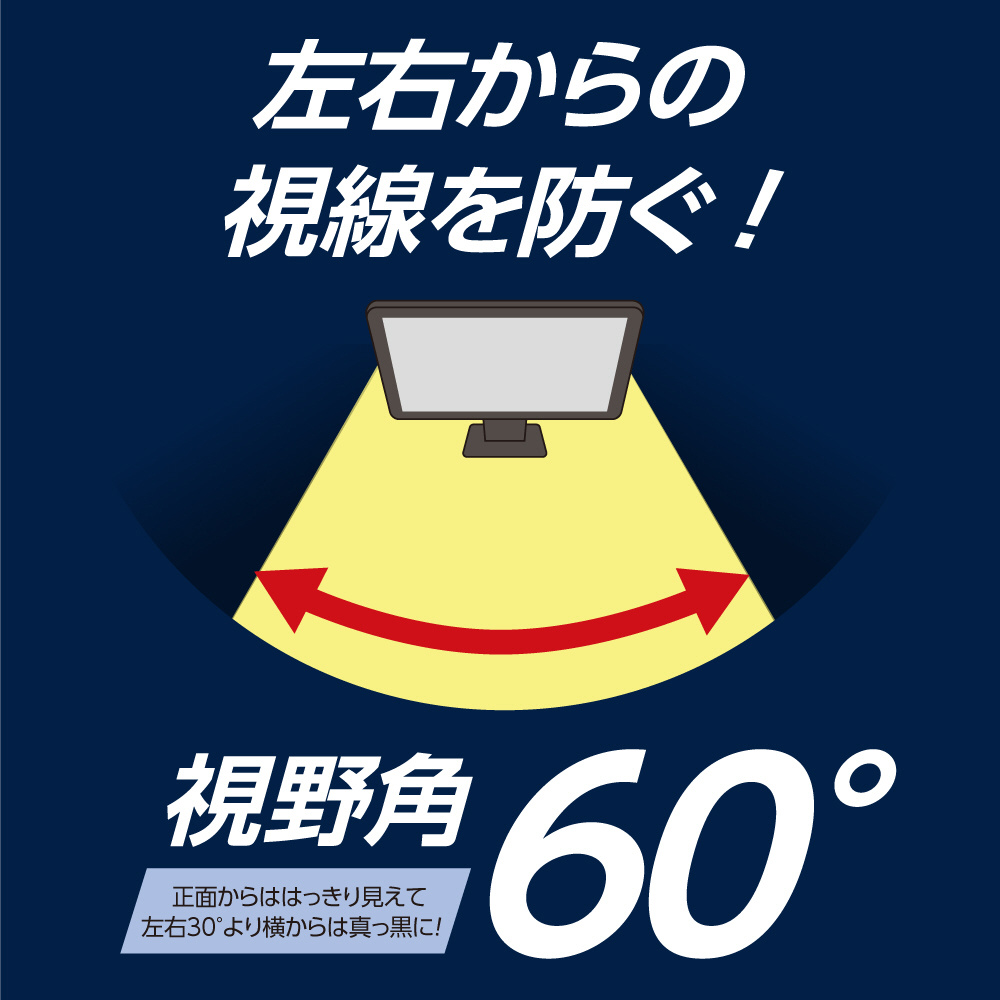 ブラインド効果で正面からはハッキリ、横から見ると画面は真っ黒に見え、のぞき見を防止します。