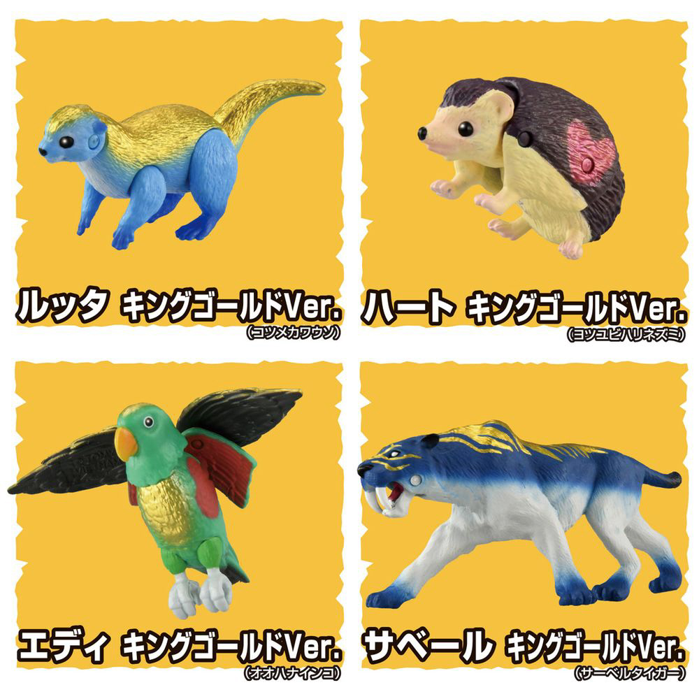 キングゴールドVer.になったルッタ(コツメカワウソ)、ハート(ヨツユビハリネズミ)、
