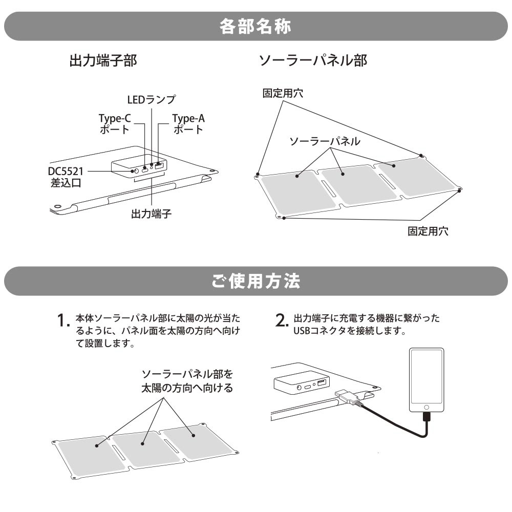 アウトドアや防災に便利なソーラー充電器