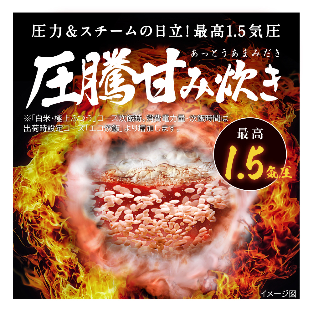 ※「白米・極上ふつう」コース炊飯時。消費電力量、炊飯時間は出荷時設定コース「エコ炊飯」より増加します。