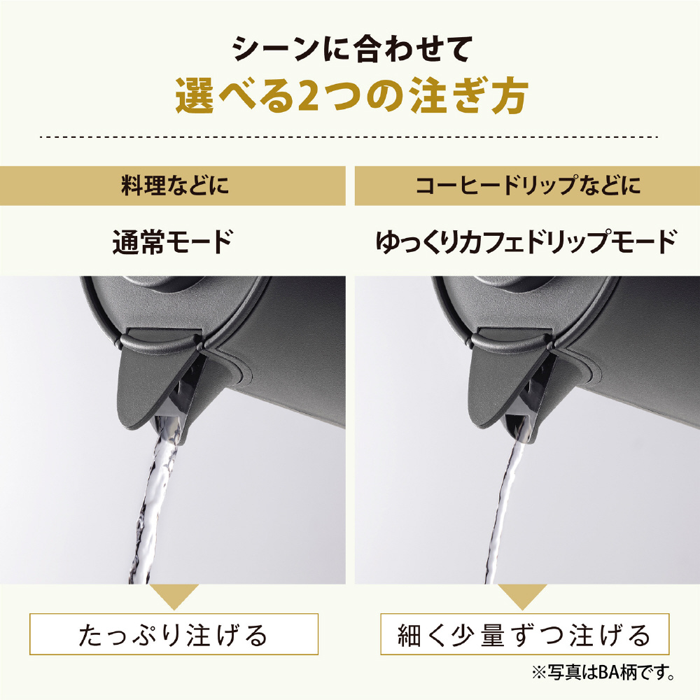 ・流量を切り替えるレバーで、用途に合わせて注ぐお湯の量が選べます。(通常モード・ゆっくりモード)