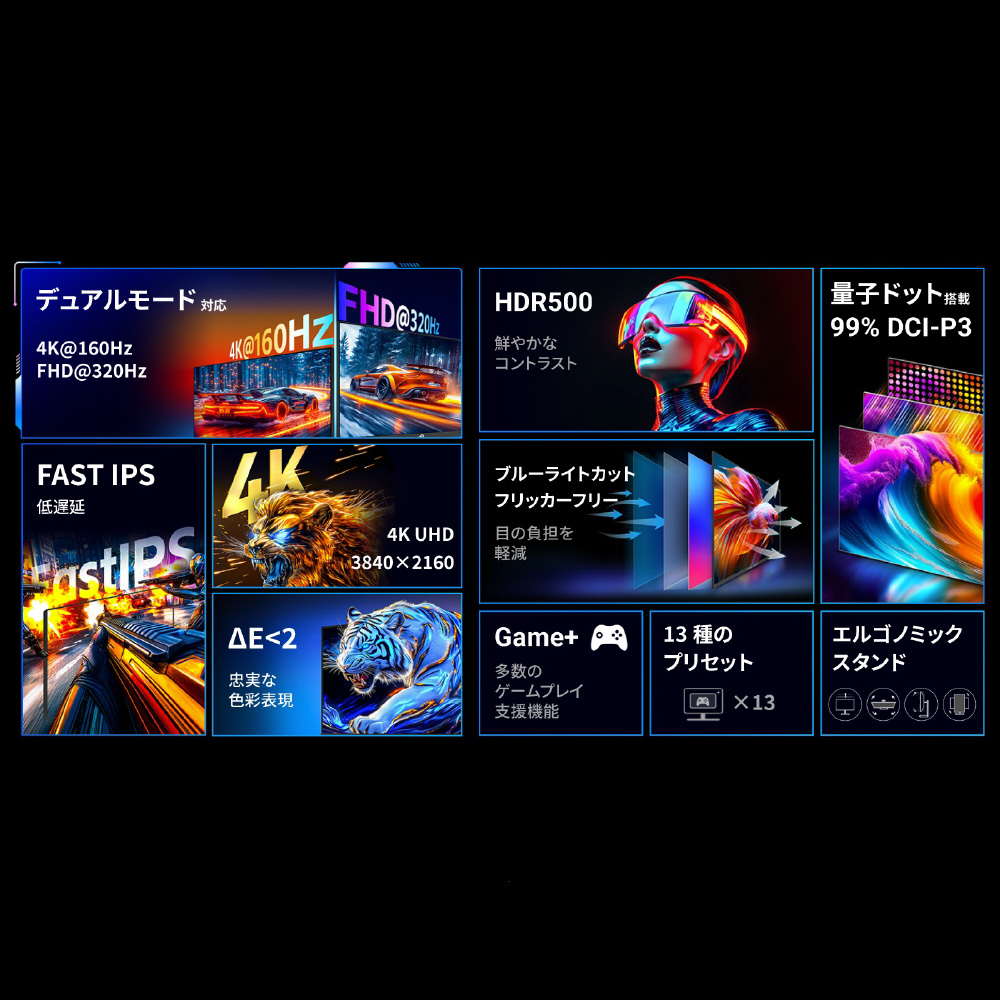 ■デュアルモード 4K 160Hz / FHD 320Hz動作に対応