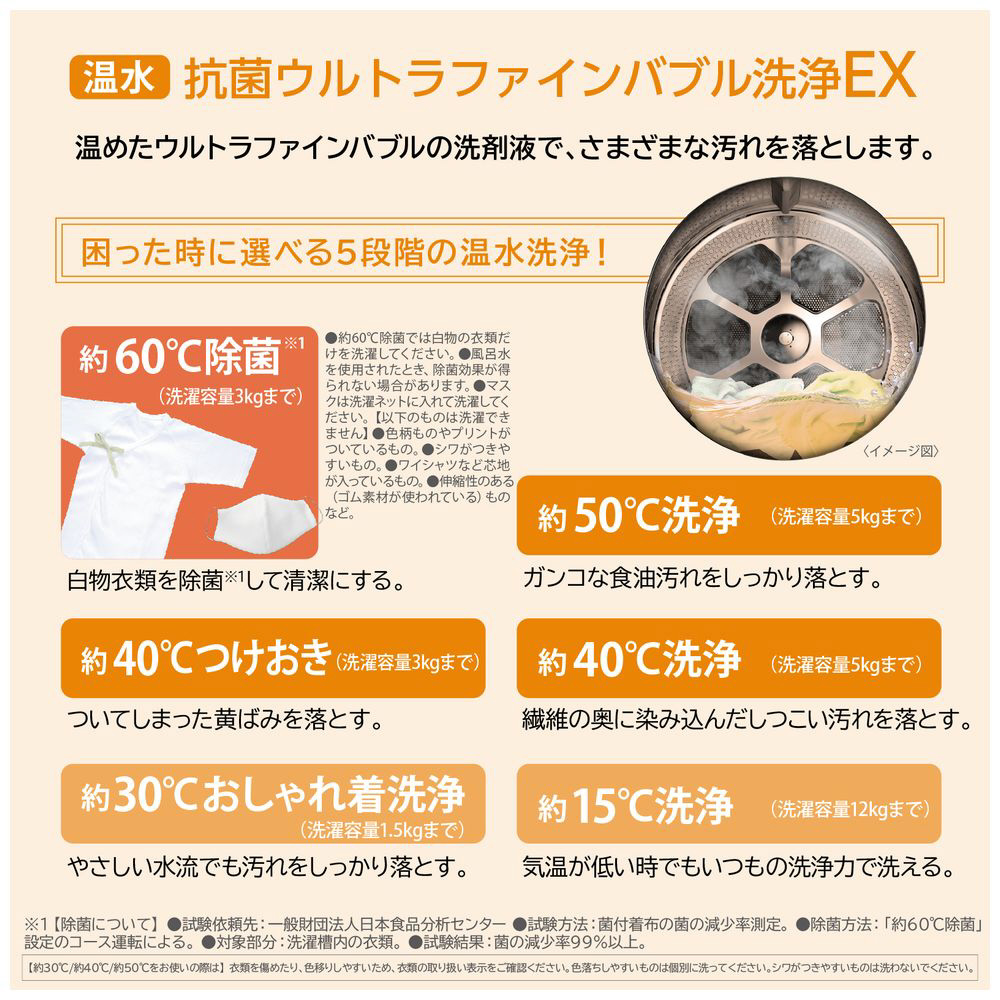 抗菌ウルトラファインバブル洗浄EX、液体洗剤・柔軟剤自動投入、ハイパワーUVを新搭載、大型カラータッチパネルの最上位モデル。