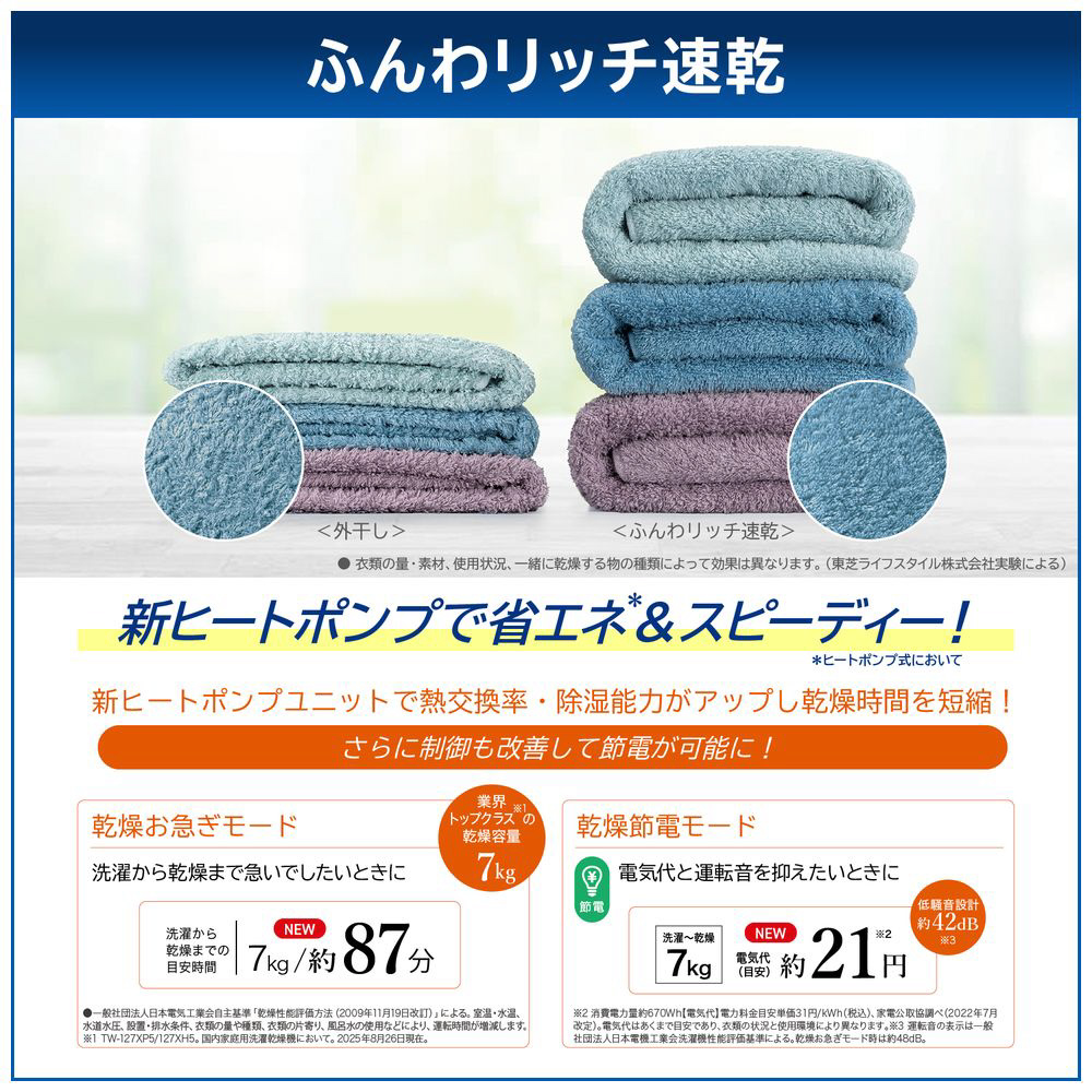 ドラム式洗濯乾燥機 ZABOON(ザブーン) グランホワイト TW-127XH5R-W [洗濯12.0kg /乾燥7.0kg /ヒートポンプ乾燥 /右開き]