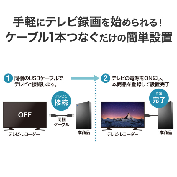 テレビと本商品をケーブル1本でつなぐだけで、テレビ録画を始められます。