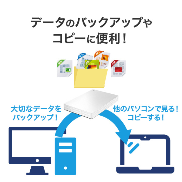 大切なデータをバックアップできるだけではなく、他のパソコンにつなぎ替えて、データを見たりコピーする際にも便利に活躍します。