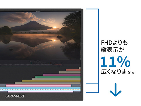 ■WUXGA(1920x1200)解像度(アスペクト比16:10)は、従来のフルHD(1920x1080)解像度(アスペクト比16:9)より縦の解像度が11%大きいので、ニュースやブログなどのウェブサイトを一度に表示できるコンテンツ量が増えます。