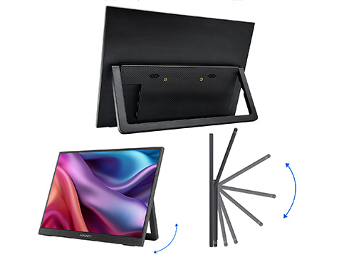 ■モニター背面にキックスタンドを搭載しているので自立して使用することができ、どこでもデュアルディプレイ環境の構築が可能です。また、携帯時に便利なフェルトケースを同梱。製品本体をホコリや傷から守り、持ち運びに最適です。