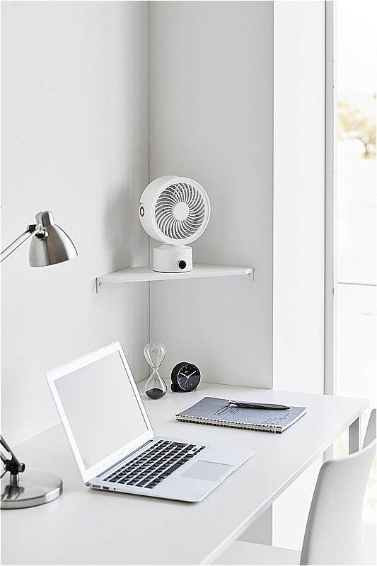 電源コードは背面の隙間から通すことができ、サーキュレーターをお好みの高さに設置することで、空気を循環させることができ電気代の節約にもなります。