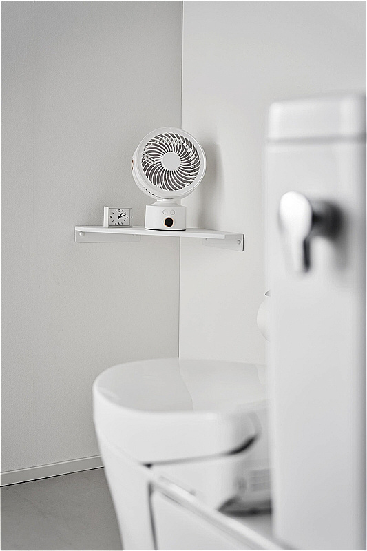 ミニサーキュレーターやハンディーファンの置き場としてトイレのコーナーへの設置もおすすめです。