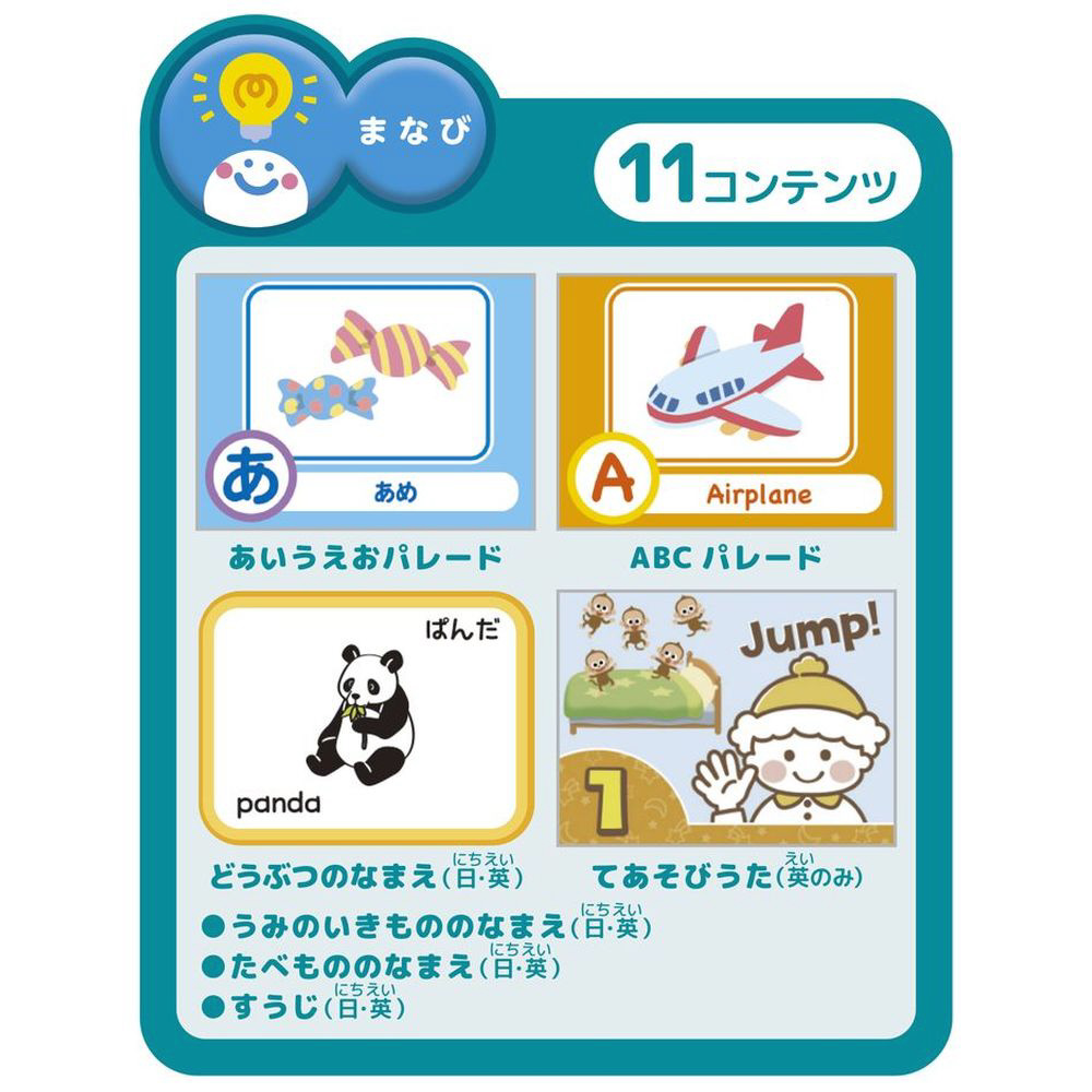あいうえおパレード、ABCパレード、どうぶつのなまえ、てあそびうた等