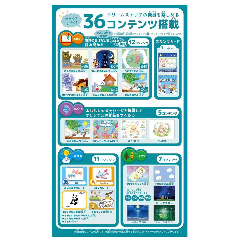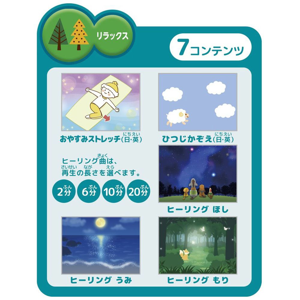 ■ゆっくり動く「おはなし」「まなび」「リラックス」 全36コンテンツを搭載