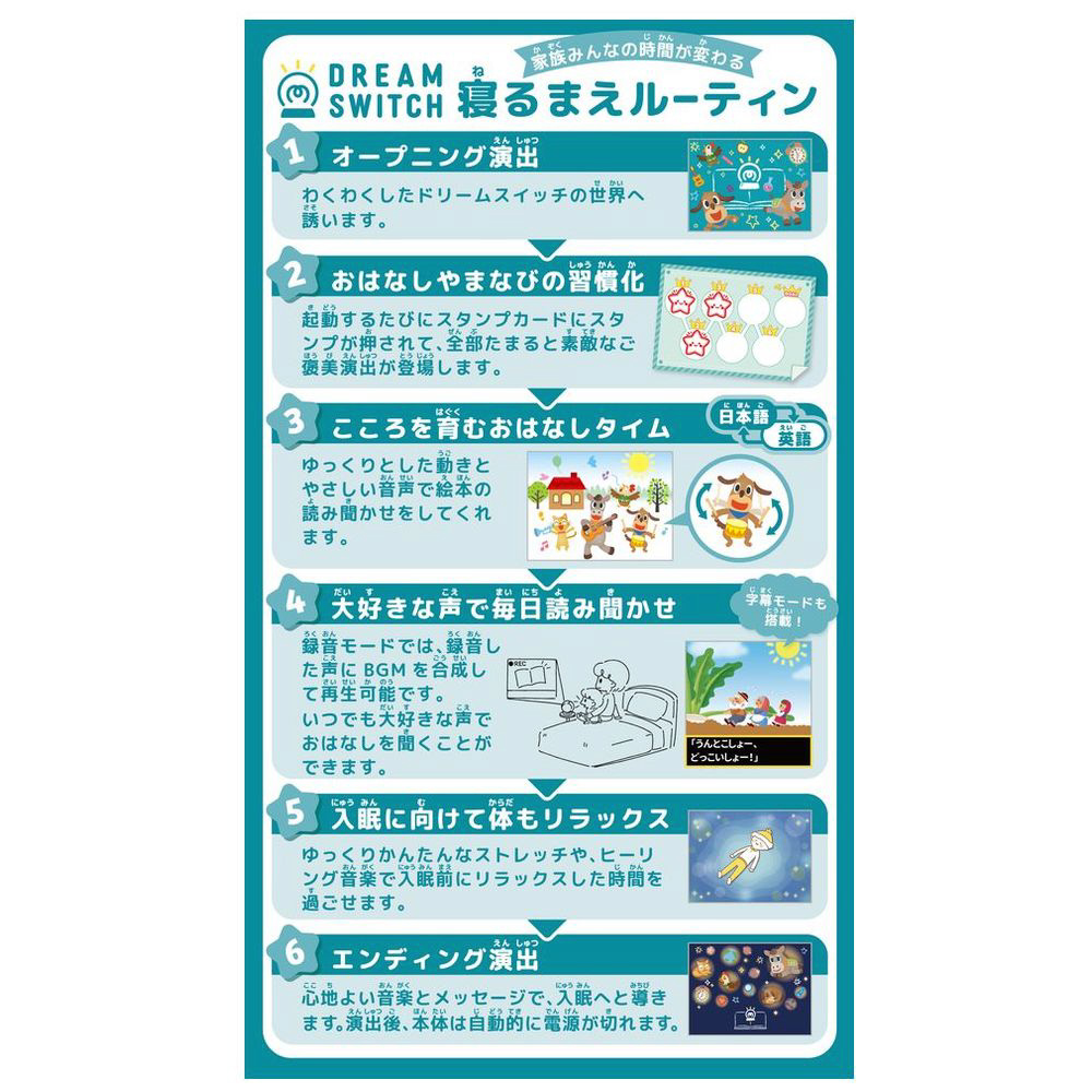 寝る前の家族みんなの時間が変わる!自由にカスタマイズできる新しい“寝る前ルーティン”体験を提案する、プロジェクター型絵本です。