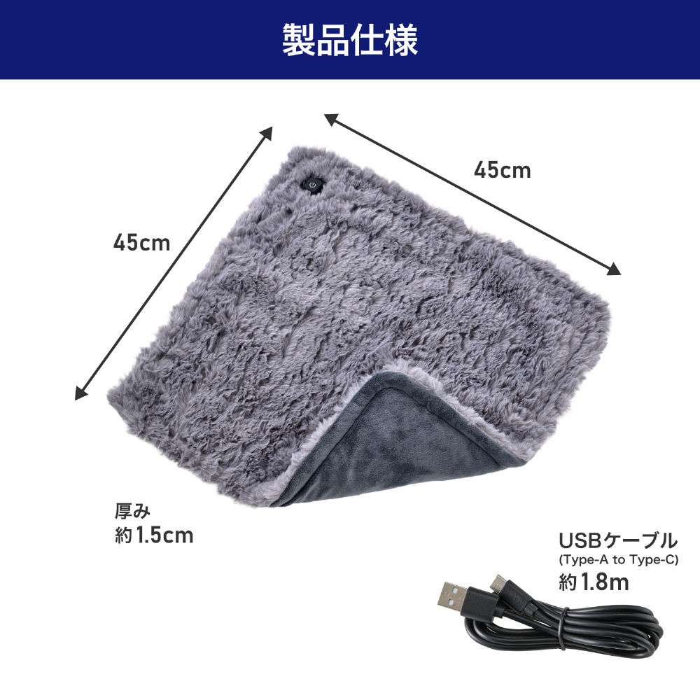 USBホットマット ELPA グレー UHM-KDR01(GY)
