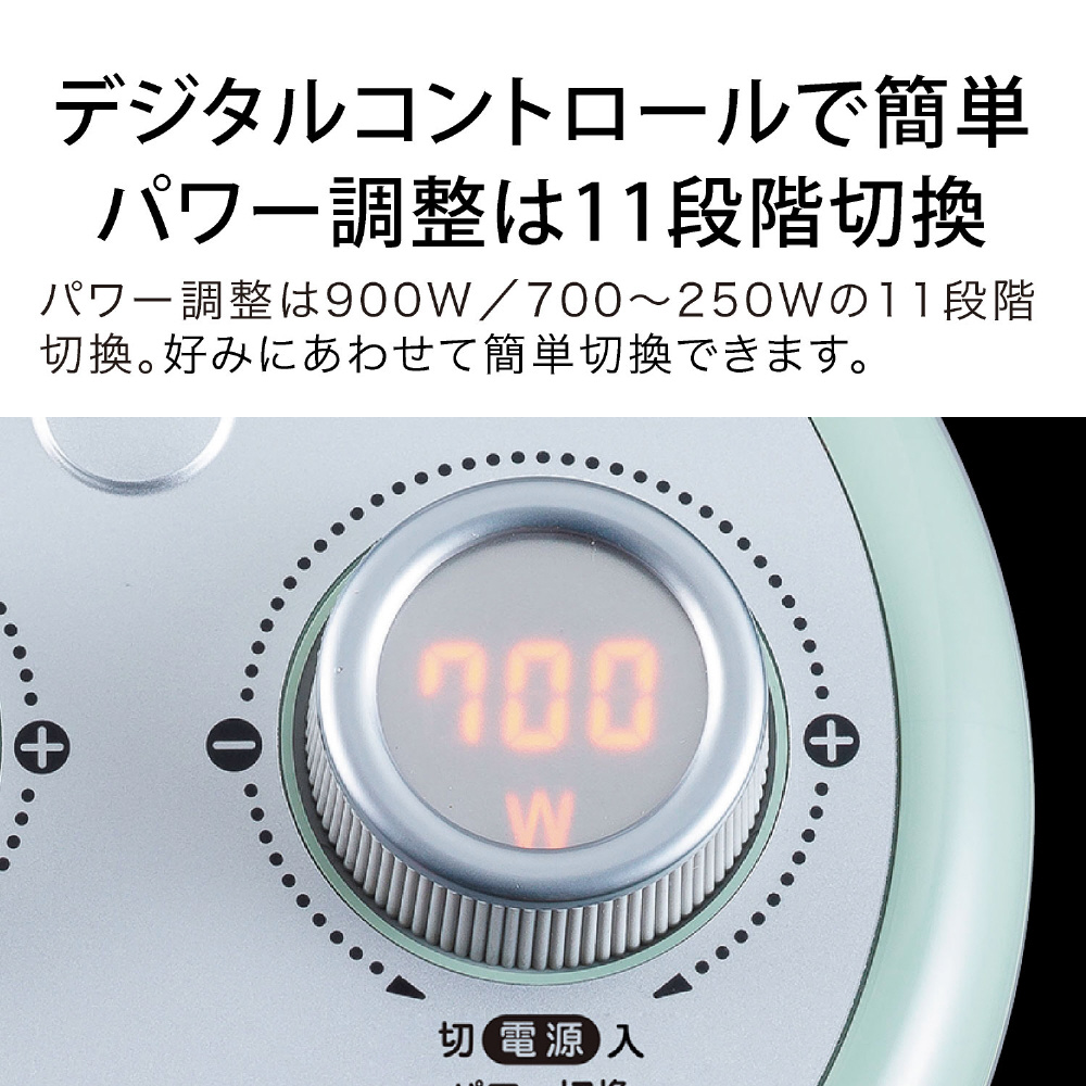最大900W 700W~最小250Wまで50Wずつ設定できる省エネ設計