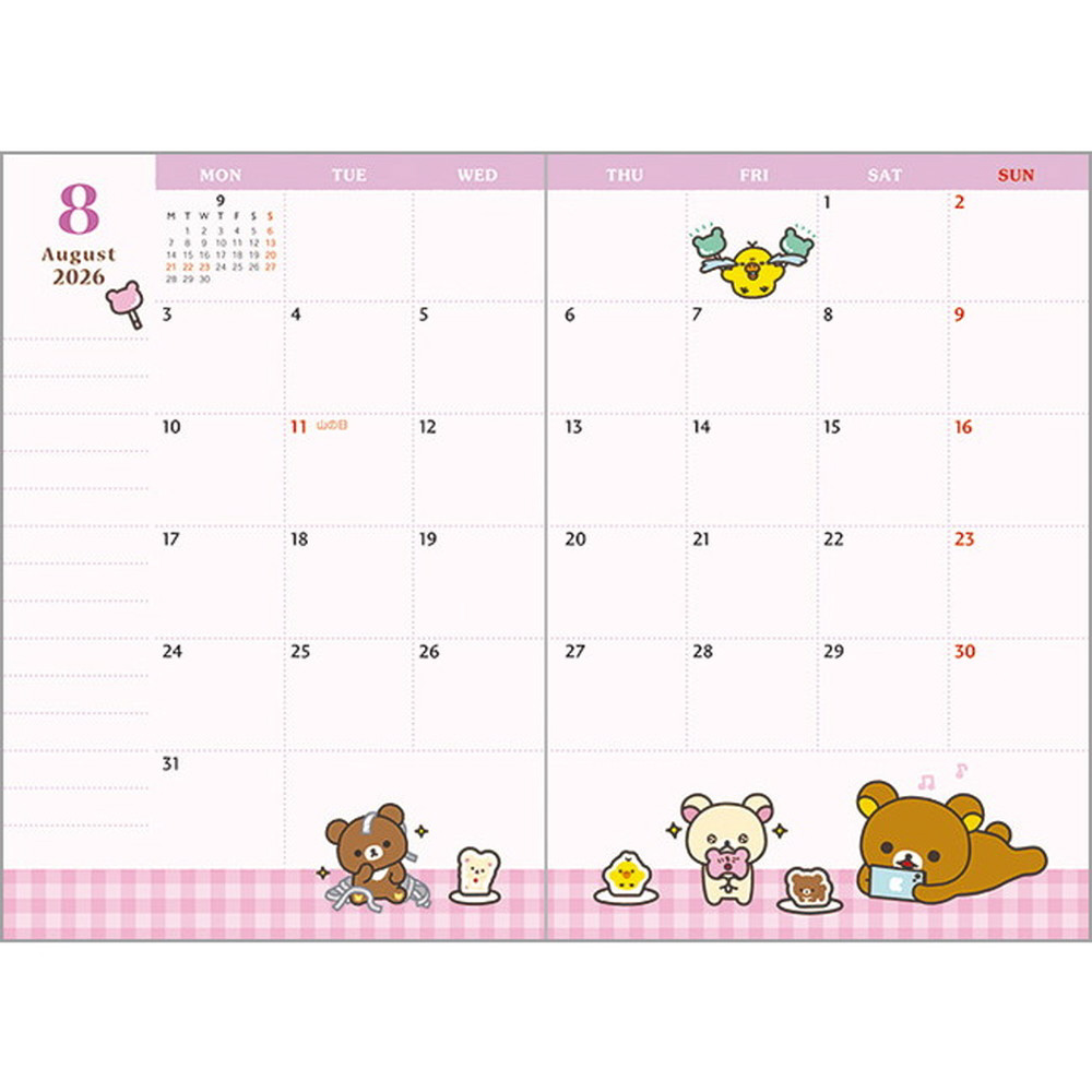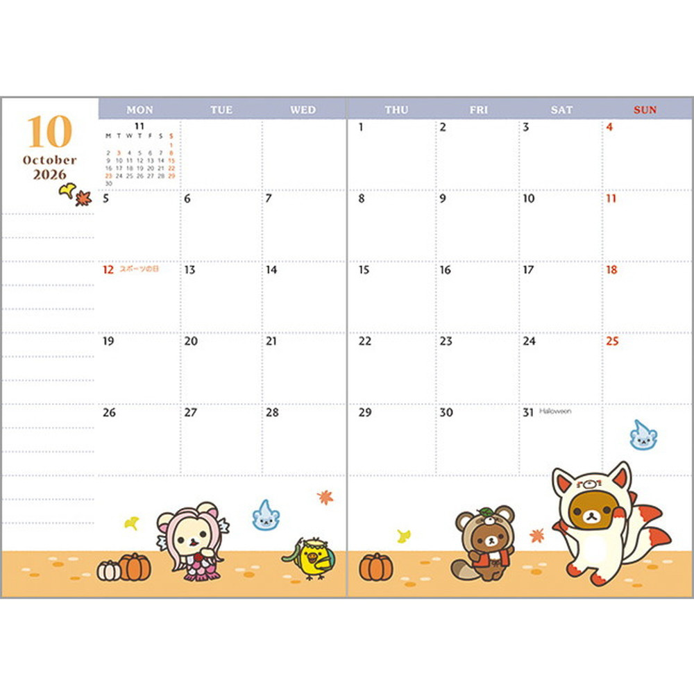 糸とじ手帳ワイド リラックマ ME67411 [マンスリー /月曜日始まり]