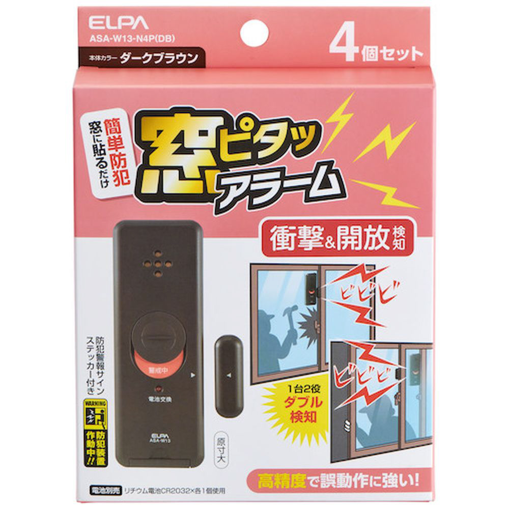 ELPA 窓ピタッアラーム 衝撃&開放検知4P