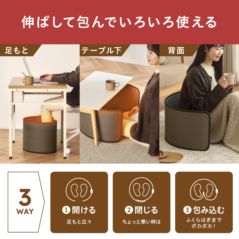 開ける・閉じる・包み込む!お好みで使い方をお選びいただける3WAYタイプのパネルヒーターです。