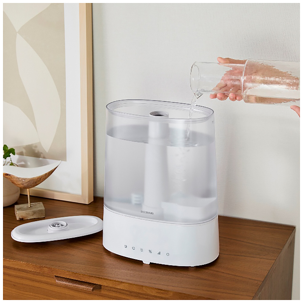 550ml/hの大加湿量で6Lの大容量タンクのハイブリッド加湿器です