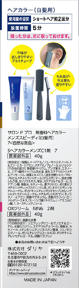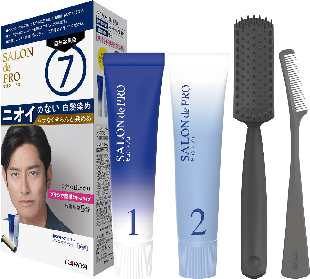 SALON de PRO(サロンドプロ)無香料ヘアカラー メンズスピーディ(白髪用)7(自然な黒色) 1剤40g+2剤40g