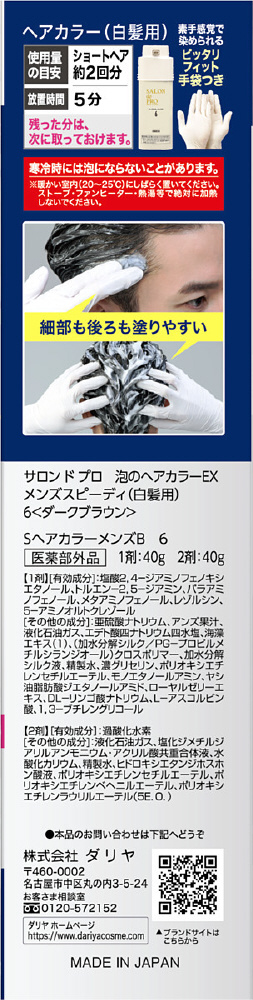 SALON de PRO(サロンドプロ)泡のヘアカラーEX メンズスピーディ(白髪用)6(ダークブラウン) 1剤40g+2剤40g